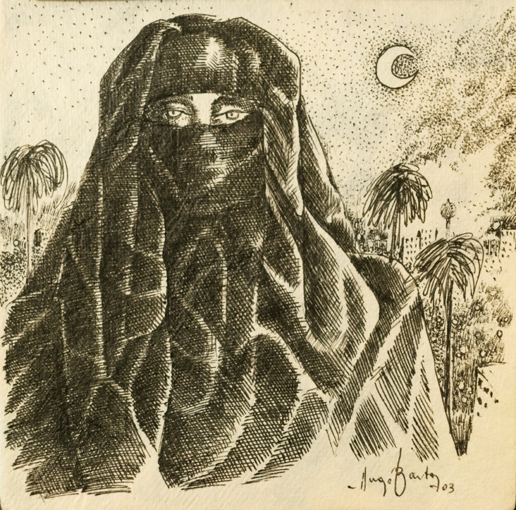 Bucear en su mirada es internarse en un desierto de arenas insondables, en un espacio abierto de distancias medidas en calor y sombras; en un tiempo inmóvil cronometrado en sueños sostenidos en la somnolencia. Mientras la joroba del dromedario se balancea sin prisa, al ritmo monótono de recuerdos ancestrales sus ojos se humedecen con la humedad de los oasis y se secan con el reflejo del sol en la arena. Sus ojos —liberados en el tiempo— relatan historias de sed que se cuentan en fogones abiertos al cielo estrellado. Esos ojos que identifican encrucijadas de dunas errantes misteriosas sin señalizar. Esos ojos no tienen palabras en ningún idioma conocido, tienen solamente imágenes forjadas a fuego por las llamas que brotan del suelo incandescente.